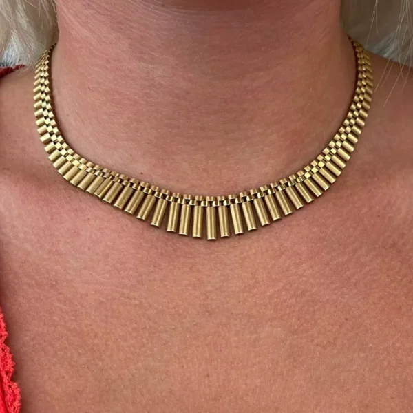 Rolex Link Chain Brushed Satin Finish Choker Collar Necklace in 14k Yellow Gold