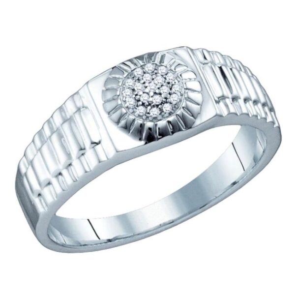 .05 Carat Mens Round Micro-Pave Diamond Rolex Ring in Sterling Silver