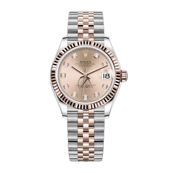 The Lady Datejust 31 is a charming watch with rose dial that strikes the perfect balance between romantic and functional. The two-tone stainless steel and rose gold 31 mm case is assembled with a fixed, everose gold bezel and a screw-in crown. This timepiece is powered by the self-winding 2236 calibre with a 55-hour power reserve.