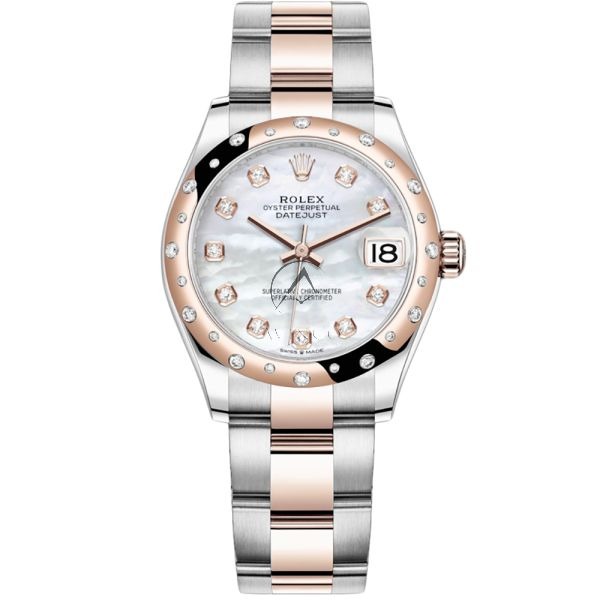 The Lady Datejust 31 is a charming watch with Mother of Pearl dial that strikes the perfect balance between romantic and functional. The two-tone stainless steel and rose gold 31 mm case is assembled with a fixed, everose gold bezel with 24 diamonds and a screw-in crown. This timepiece is powered by the self-winding 2236 calibre with a 55-hour power reserve.