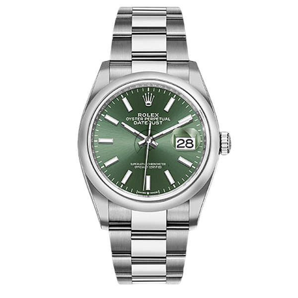 The Datejust 36 is a charming watch with green dial that strikes the perfect balance between romantic and functional. The oystersteel stainless steel 36 mm case is assembled with a fixed, matching bezel with a screw-down case back and twinlock double waterproofness system. This timepiece is assembled with a self-winding 3235 calibre with a 70-hour power reserve.