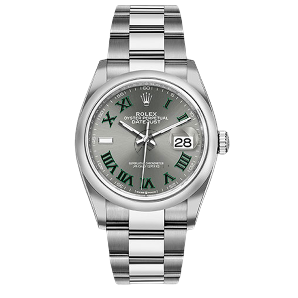 The Datejust 36 is a charming watch with slate dial that strikes the perfect balance between romantic and functional. The oystersteel stainless steel 36 mm case is assembled with a fixed, matching bezel with a screw-down case back and twinlock double waterproofness system. This timepiece is assembled with a self-winding 3235 calibre with a 70-hour power reserve.