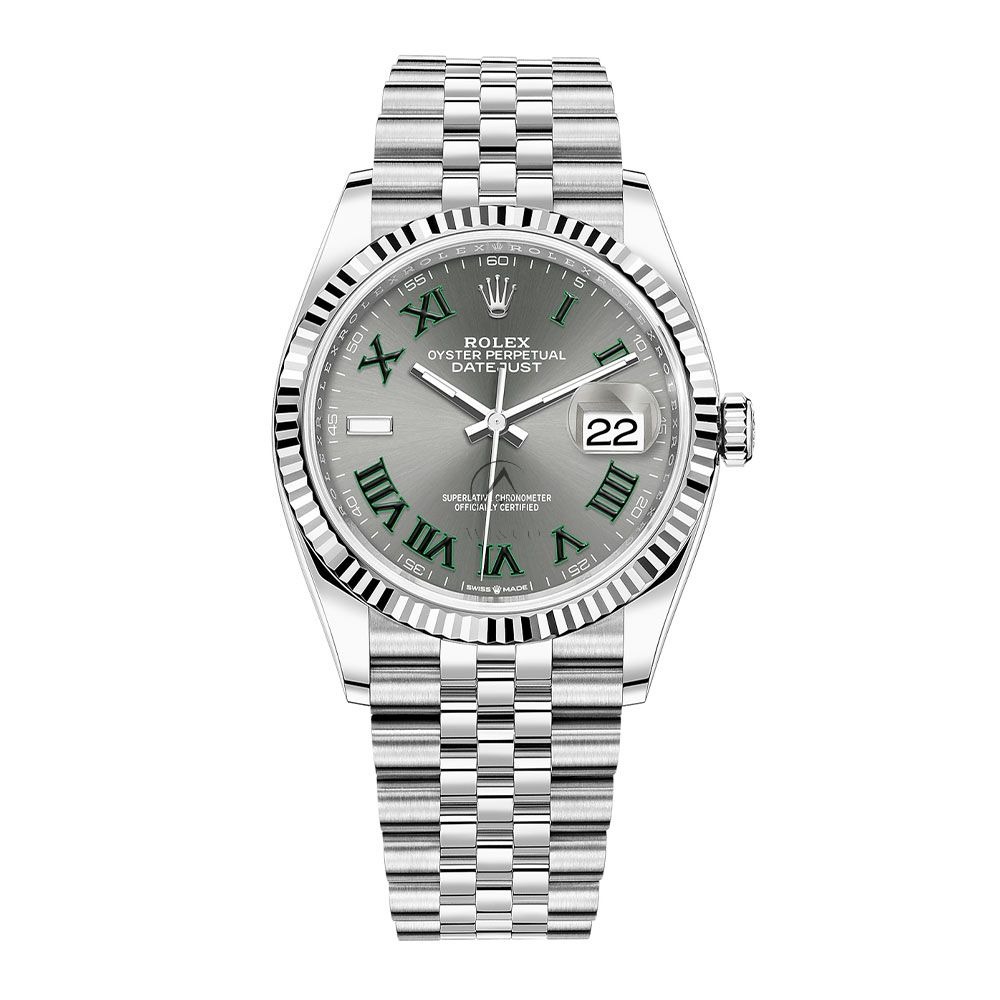 The Rolex Datejust 36 126234 is a timeless expression of elegance and precision. Featuring a stunning Wimbledon slate Roman dial, this 36mm stainless steel model embodies the sophistication Rolex is known for. The dials unique slate grey color, complemented by contrasting Roman hour markers, creates a refined yet bold look. The iconic Jubilee bracelet adds a touch of comfort and style, offering a luxurious wearing experience. Powered by the precise Caliber 3235 movement, the Datejust 126234 provides enhanced accuracy and a 70-hour power reserve. With its date function and Cyclops lens for easy date reading, the Datejust 36 is a versatile and highly functional piece. Perfect for those who appreciate timeless design and impeccable Swiss craftsmanship, the Rolex Datejust 36 126234 is ideal for both everyday wear and special occasions.