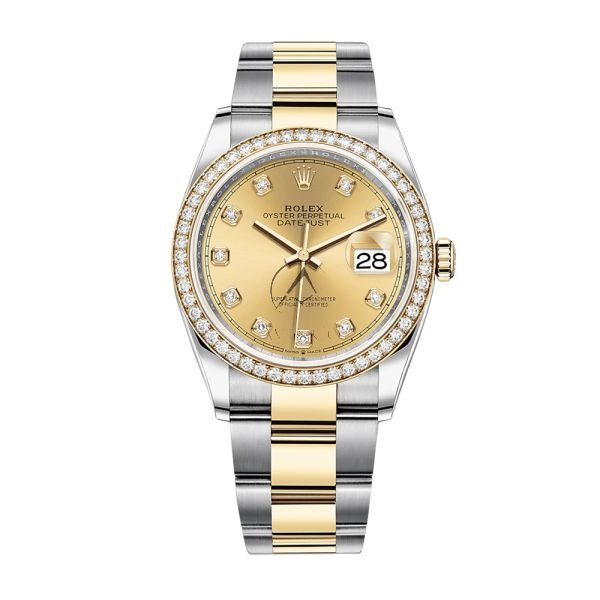 The Datejust 36 is a charming watch with a champagne dial that strikes the perfect balance between romantic and functional. The stainless steel and yellow gold 36 mm case is assembled with a fixed, yellow gold bezel, a screw-in crown, and a cyclops magnifying glass. This timepiece is powered by the self-winding 3235 calibre with a 70-hour power reserve.