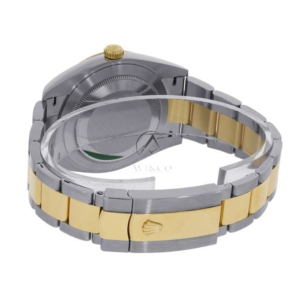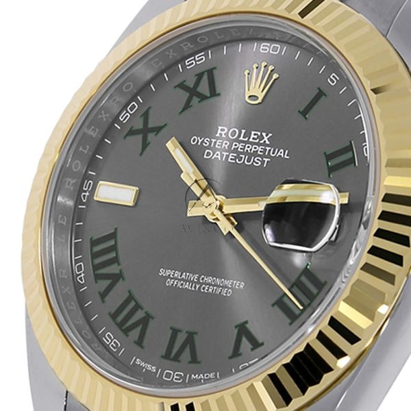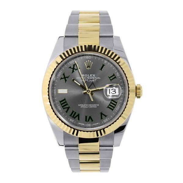The Rolex Datejust 41 126333 pairs the strength of stainless steel with the warmth of 18K yellow gold to create a versatile and luxurious timepiece. Its 41 mm case frames a distinctive Wimbledon slate dial, featuring elegant Roman numeral hour markers that add classic sophistication. The smooth yellow gold bezel complements the Oyster bracelet, known for its robust yet comfortable design. Powered by Rolex’s caliber 3235 automatic movement, this watch delivers outstanding precision, a 70-hour power reserve, and Superlative Chronometer certification. Combining sporty durability with refined aesthetics, the Datejust 41 126333 is a perfect watch for everyday elegance.