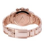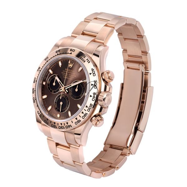 The Rolex Cosmograph Daytona 116505 is the ultimate expression of refined performance and luxurious design, crafted entirely in 18K Everose gold. With a 40 mm Oyster case and a rich chocolate brown dial, this timepiece commands attention through its elegant color contrast and high-functionality chronograph layout. The trio of sub-dials and engraved tachymeter bezel reflect the Daytona’s legendary motorsport heritage, while the proprietary self-winding movement ensures exceptional precision and durability. Whether worn on the track or in a formal setting, the 116505 offers a perfect blend of bold sophistication and Rolex engineering excellence.