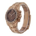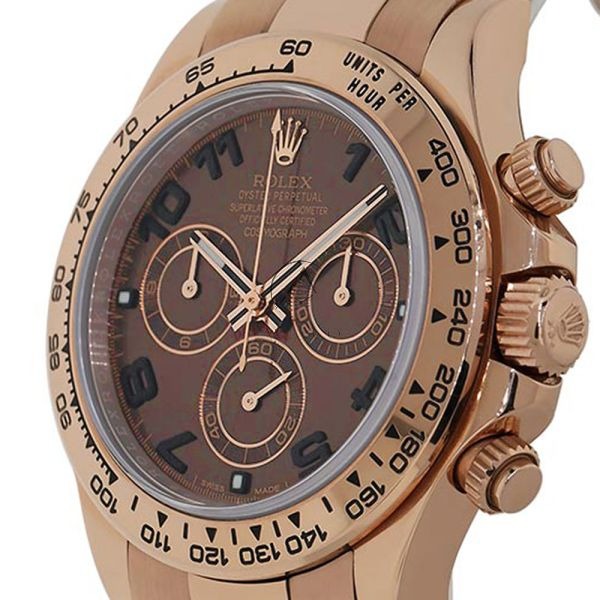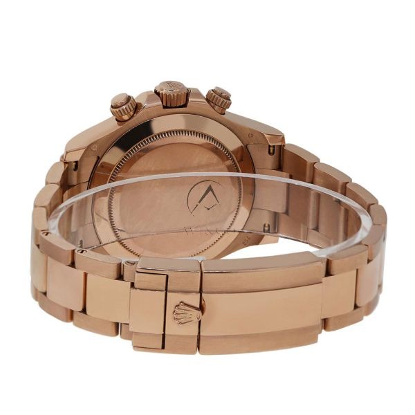 The Daytona Oyster employs one of the trendiest metals on the market and defines the beauty of design with a dark dial lifted with rose gold finishing. The rose gold 40 mm case is assembled with a screw-down solid case back and winding crown. This timepiece is powered by the self-winding 4130 calibre with a 72-power reserve.