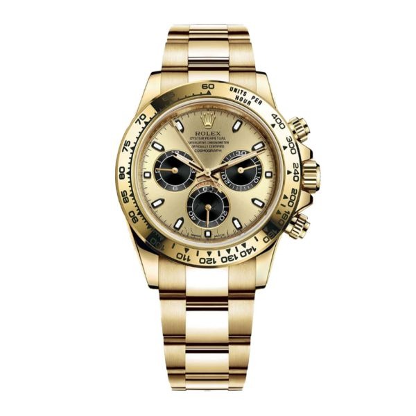 The Rolex Daytona 116508, nicknamed the “Pikachu” by collectors, is a bold and luxurious interpretation of Rolex’s legendary chronograph. Crafted in solid 18K yellow gold, the 40mm Oyster case is paired with a matching Oyster bracelet, delivering a seamless and radiant aesthetic. The champagne sunburst dial, accented with black subdials, creates a vivid contrast that inspired its playful nickname while retaining the timeless Daytona racing heritage. Luminous hour markers and hands ensure excellent legibility, while the engraved tachymeter bezel underscores its professional chronograph functionality. At its core, the watch is powered by the in-house Caliber 4130 automatic movement, offering precise timekeeping, a 72-hour power reserve, and robust reliability. The 116508 “Pikachu” merges motorsport DNA with vibrant luxury, making it a standout within the Daytona collection.