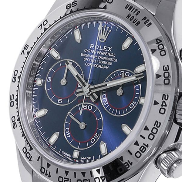 The Rolex Daytona 116509 in 18K white gold is a powerful fusion of sporty performance and refined luxury. Housed in a 40 mm solid white gold case, this model features a striking metallic blue dial accented by luminous baton hour markers and three chronograph subdials for measuring elapsed time with precision. The tachymetric scale on the bezel reflects the Daytona’s racing heritage, while the polished Oyster bracelet offers both durability and a sleek, ergonomic fit. Powered by the in-house caliber 4130 automatic chronograph movement, the watch delivers exceptional accuracy, a 72-hour power reserve, and COSC-certified performance. The Daytona 116509 is a bold yet elegant choice for those who appreciate technical mastery wrapped in precious metal.