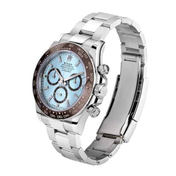 The Rolex Daytona 126506 is a masterpiece of watchmaking, crafted from precious platinum and featuring a captivating Ice Blue dial adorned with diamonds. This timepiece combines timeless design with modern elegance, offering both performance and luxury. With its impressive water resistance and precise chronograph function, the Daytona 126506 is a coveted choice for those seeking a truly exceptional timepiece.