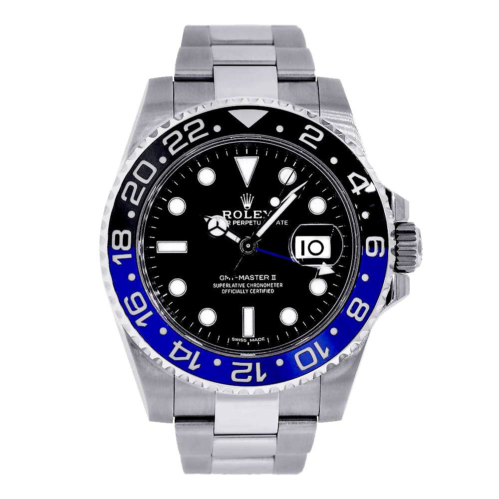 The Rolex GMT-Master II 126710BLNR, nicknamed the “Batman,” is an iconic travel companion with unmistakable character. Its 40mm case is crafted from corrosion-resistant Oystersteel and paired with a sporty and robust Oyster bracelet for a sleek, contemporary look. The standout feature is the black and blue Cerachrom ceramic bezel, designed to track a second time zone via the independently adjustable GMT hand. The black dial offers sharp contrast and excellent legibility, with luminous hour markers and hands treated with Chromalight for lasting visibility. Driven by the advanced Caliber 3285 automatic movement, this model delivers exceptional accuracy, a 70-hour power reserve, and Rolexs renowned durability. With its dynamic color scheme and functional excellence, the 126710BLNR blends heritage with modern utility in a way only Rolex can.