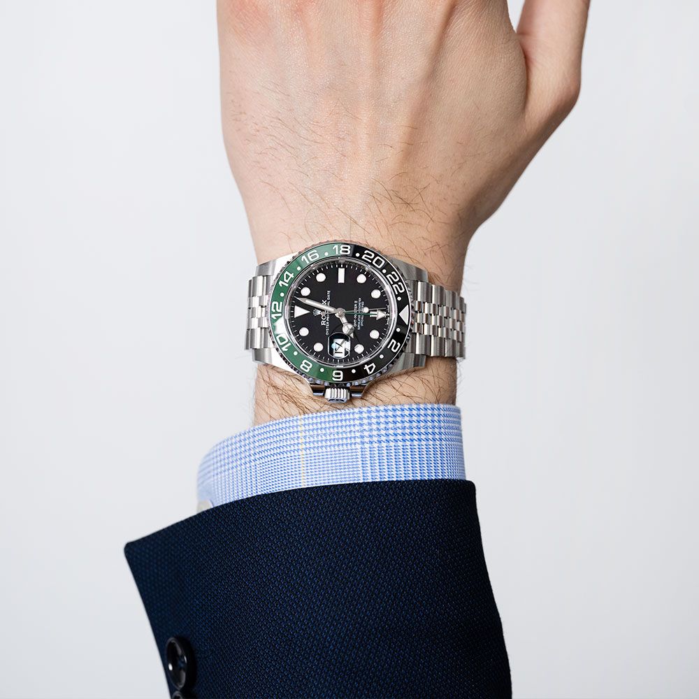 The Rolex GMT Master II Lefty, reference number 126720VTNR, is a distinctive timepiece embodying style and innovation. Featuring an Oystersteel Jubilee bracelet and housed in a 40mm Oyster case, this iconic watch effortlessly balances durability. The Black Dial adds a touch of timeless refinement, while the bi-color bezel in black and green, known as the “Sprite” bezel, enhances its distinct character. Tailored for left-handed individuals, this Rolex marvel ensures comfort and functionality with its left-hand crown placement, catering to a specialized audience seeking both practicality. With a water resistance of 100 meters, it promises reliability across various settings, ideal for adventurers and explorers.