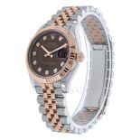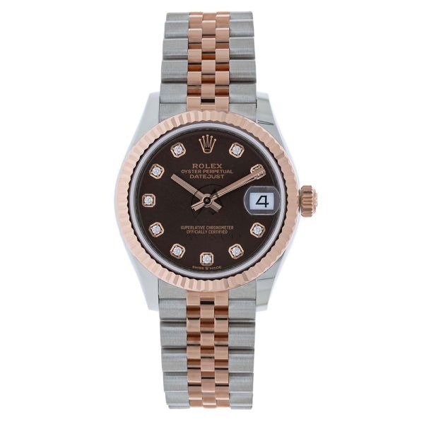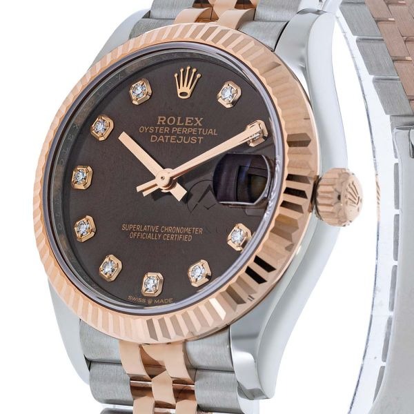 The Rolex Lady-Datejust 278271 is a stunning fusion of elegance and performance, crafted in a refined blend of stainless steel and 18K Everose gold. This 31mm timepiece features a rich chocolate dial adorned with diamond hour markers, exuding sophistication and luxury. The signature Jubilee bracelet ensures both comfort and timeless style, while the fluted bezel adds a classic Rolex touch. Powered by a precise self-winding movement, the Lady-Datejust 278271 is a symbol of enduring beauty and exceptional craftsmanship, making it a perfect choice for the modern woman who appreciates tradition and refinement.