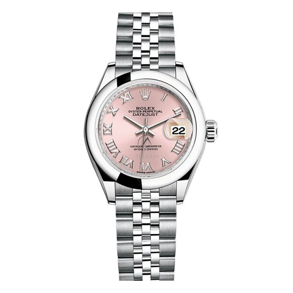 The Lady Datejust 28 is a charming watch with a pink dial that strikes the perfect balance between romantic and functional. The stainless steel 28 mm case is assembled with a screw-down crown, twinlock double waterproofness system, and a cyclops lens over the date. This timepiece is powered by the 2236 calibre with a 55-hour power reserve.