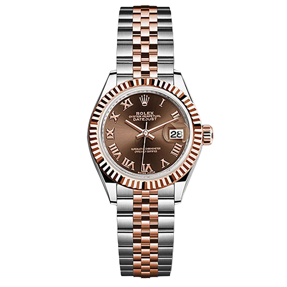 The Lady Datejust 28 is a charming watch with chocolate dial that strikes the perfect balance between romantic and functional. The two-tone stainless steel and everose gold 28 mm case is assembled with a fluted, everose gold bezel, cyclops lens over the date, and screw-down crown with twinlock double waterproofness system. This timepiece is powered by the self-winding 2236 calibre with a 55-hour power reserve.