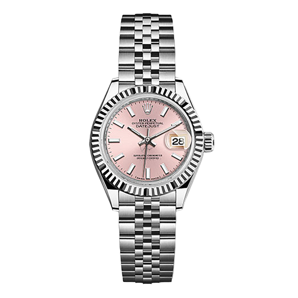 The Lady Datejust 28 is a charming watch with pink index dial that strikes the perfect balance between romantic and functional. The steel and white gold 28 mm case is assembled with a fluted, white gold bezel, screw-down crown and twinlock double waterproofness system. This timepiece is powered by the 2236 calibre with a 55-hour power reserve.