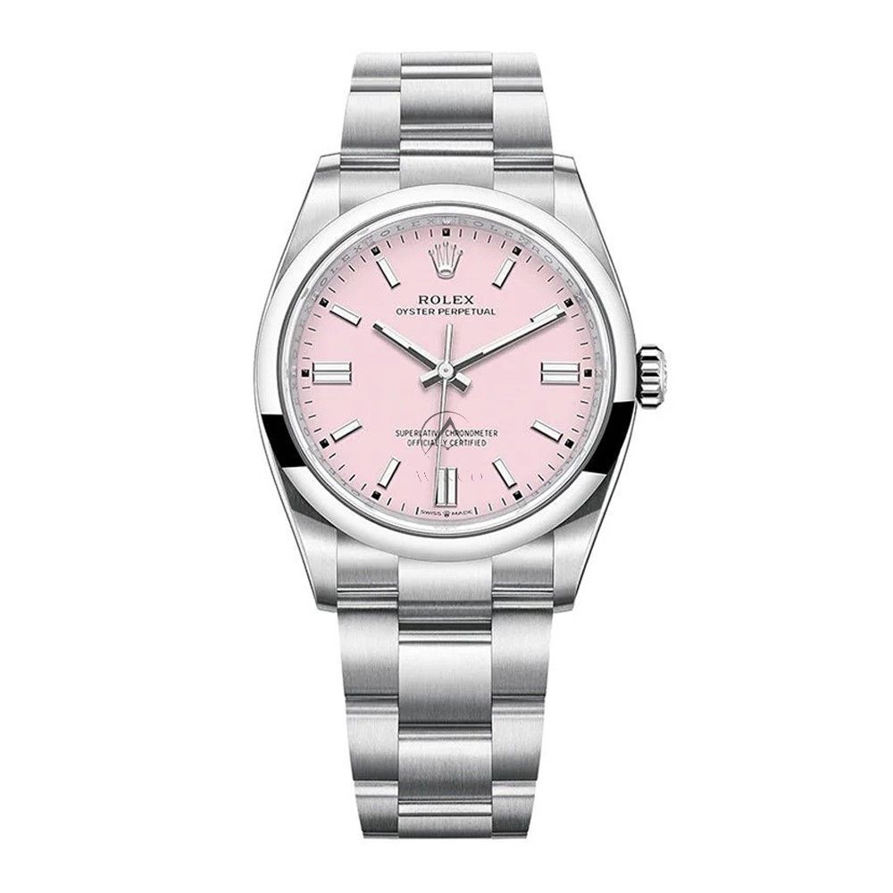 The Rolex Oyster Perpetual 126000 is a refined and versatile timepiece that combines timeless design with exceptional craftsmanship. Crafted from durable stainless steel, this 36mm watch features a soft yet captivating pink dial, which adds a touch of warmth and elegance. The clean, simple dial is complemented by white hour markers and hands, ensuring easy legibility and a modern aesthetic. Powered by Rolex’s precision self-winding movement, the 126000 offers reliable performance, while the iconic Oyster case guarantees water resistance and durability. Perfect for both everyday wear and special occasions, this classic Rolex combines functionality with effortless style, making it a must-have for watch enthusiasts.