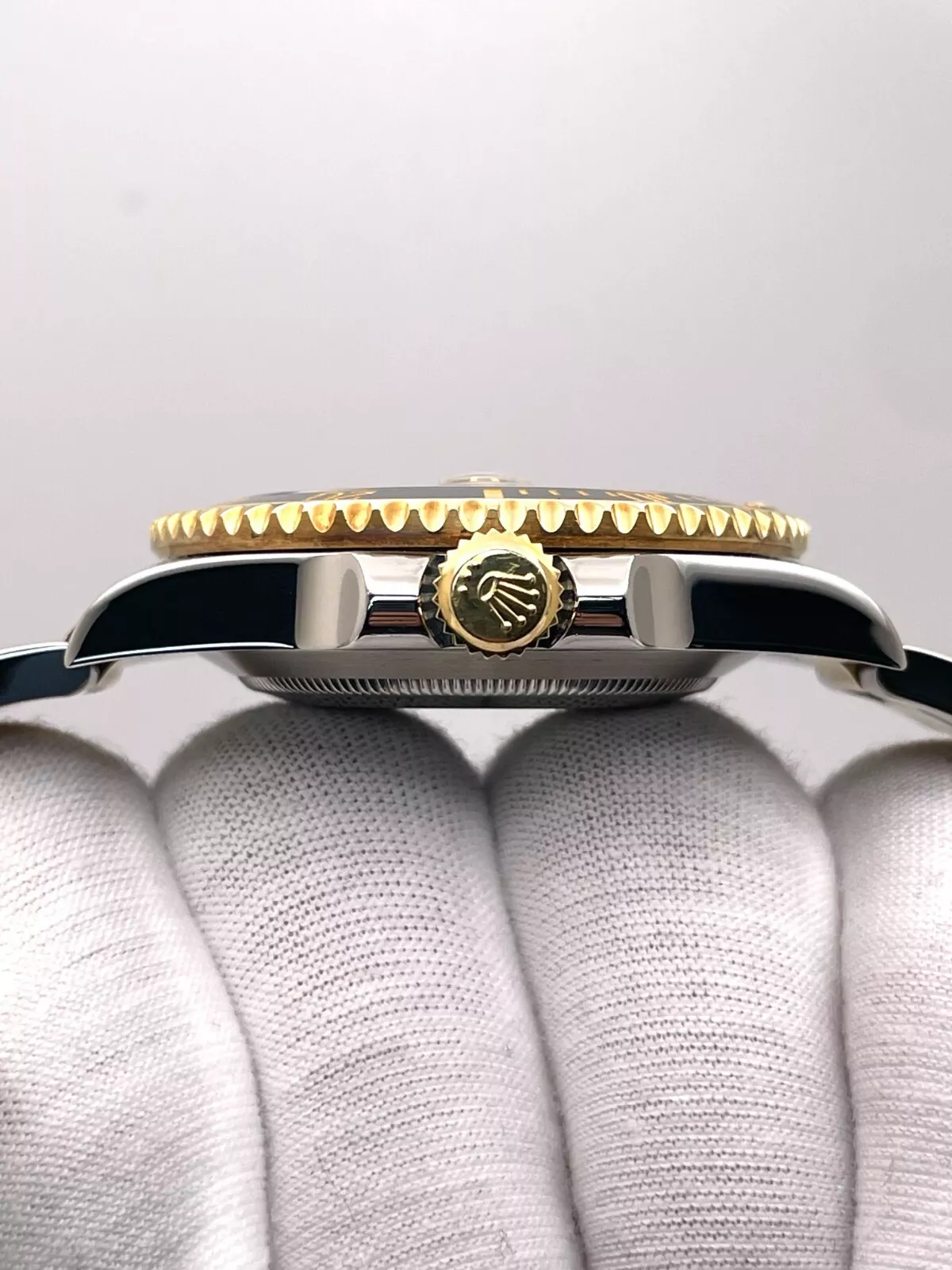 The Rolex Submariner 116613LN is a bold blend of luxury and performance, embodying the spirit of the iconic dive watch with a refined two-tone twist. Crafted from corrosion-resistant Oystersteel and 18K yellow gold, this 40mm timepiece features a striking black dial with luminous hour markers and Mercedes-style hands for superior legibility. The unidirectional black Cerachrom bezel ensures precise dive timing, while the Triplock screw-down crown and Oyster case offer water resistance up to 100 meters. Powered by the reliable Caliber 3135 automatic movement, the 116613LN delivers precision and durability in equal measure. Whether you’re diving deep or dressing up, this Submariner exudes timeless appeal and rugged sophistication.